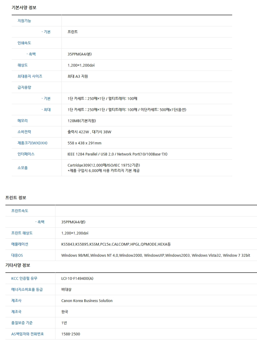 CANON 흑백레이저 프린더 요약정보 및 구매